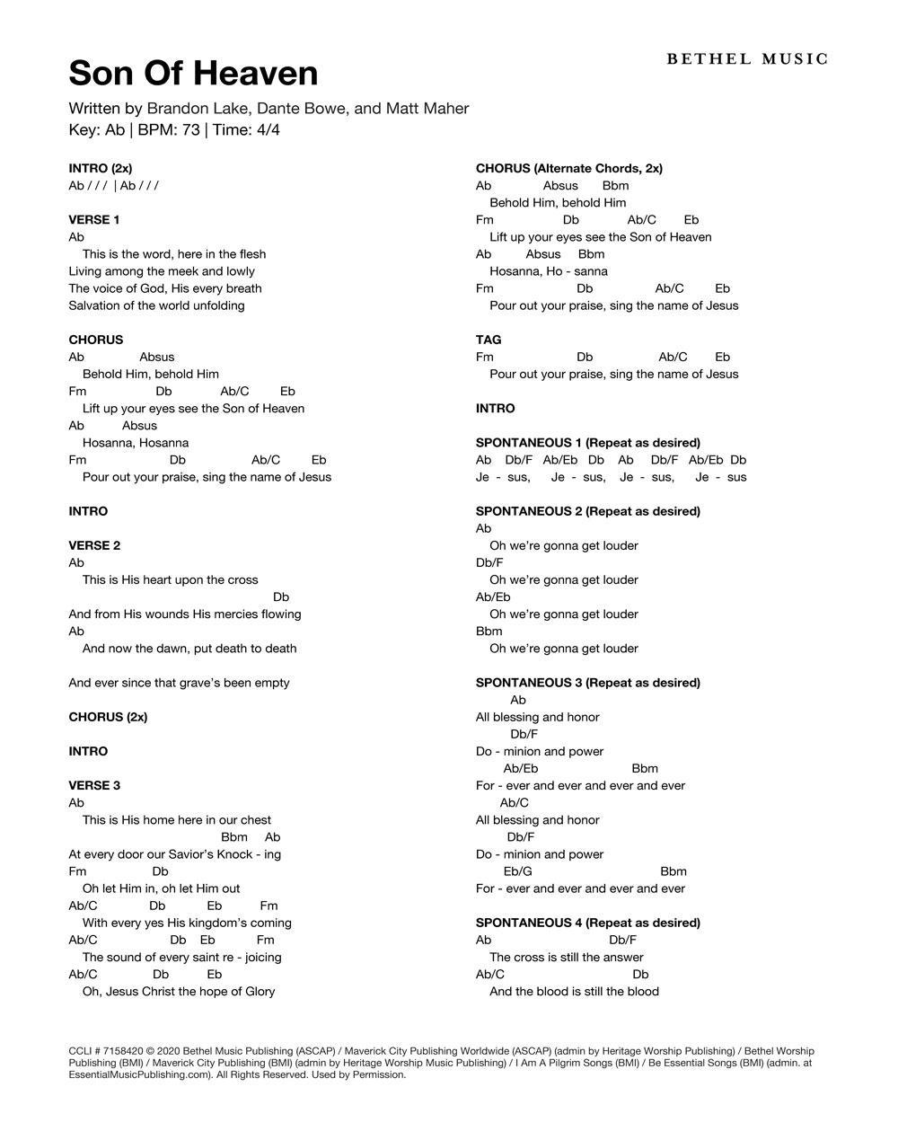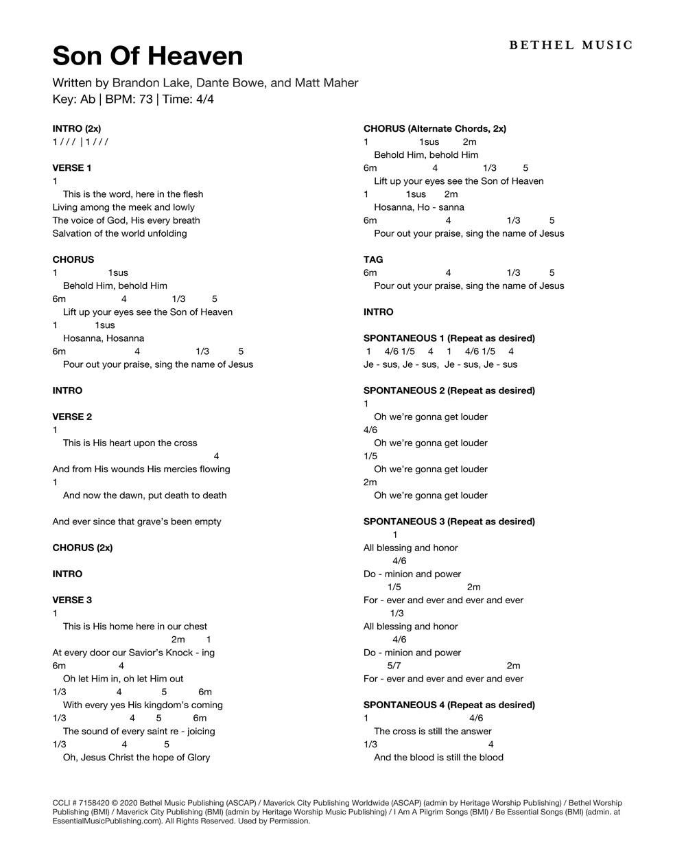 © 2020 Bethel Music Publishing (ASCAP) / Maverick City Publishing Worldwide (ASCAP) (admin by Heritage Worship Publishing) / Brandon Lake Music (ASCAP) (admin by Bethel Music Publishing) / Bethel Worship Publishing (BMI) / Maverick City Publishing (BMI) (admin by Heritage Worship Music Publishing) / I Am A Pilgrim Songs (BMI) / Be Essential Songs (BMI) (admin. at EssentialMusicPublishing.com). All Rights Reserved. Used by Permission.