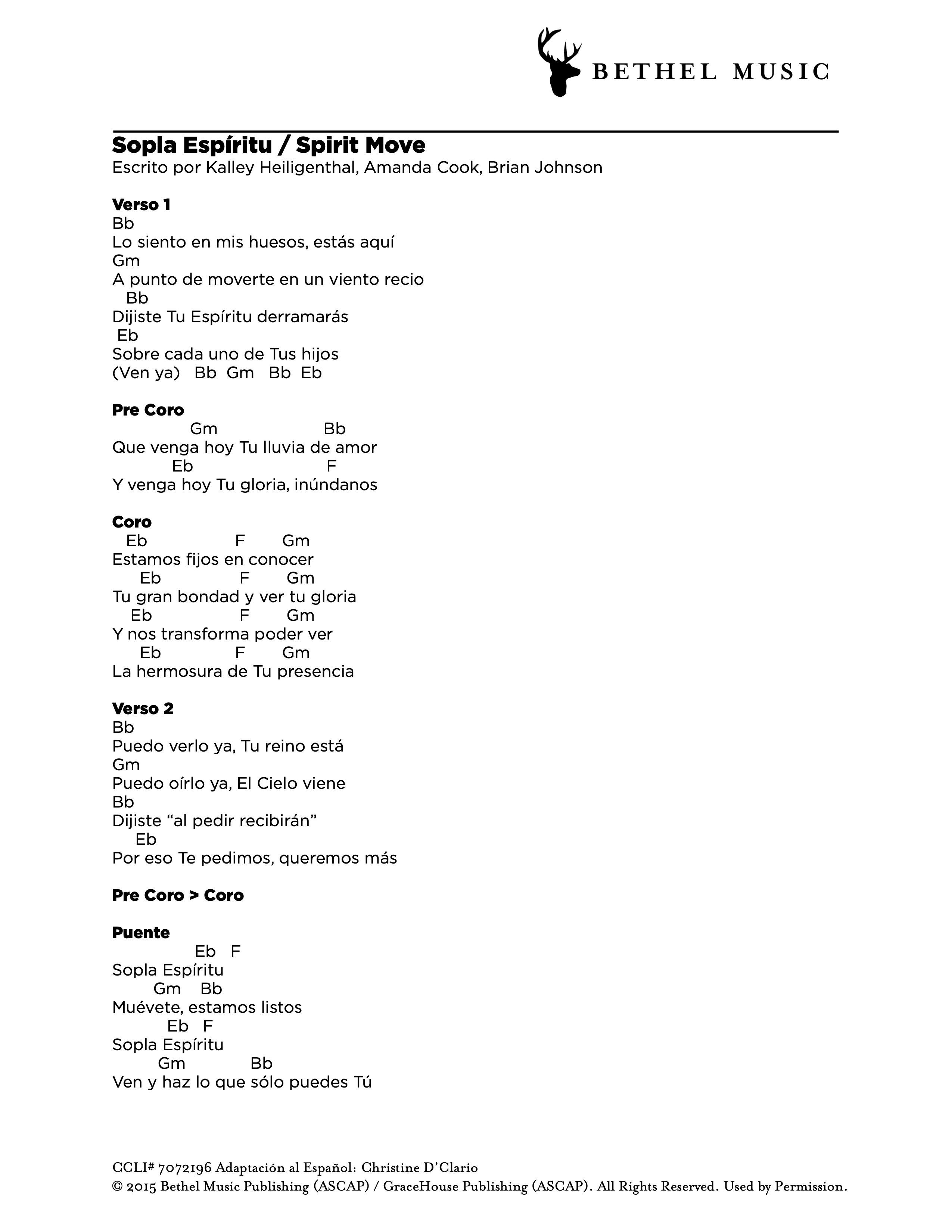 Adaptación al Español: Christine D’Clario © 2018 Bethel Music Publishing (ASCAP) / Aliento Music Group (ASCAP). All Rights Reserved. Used by Permission.