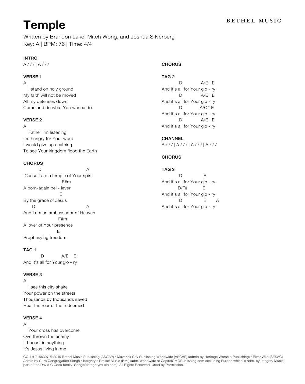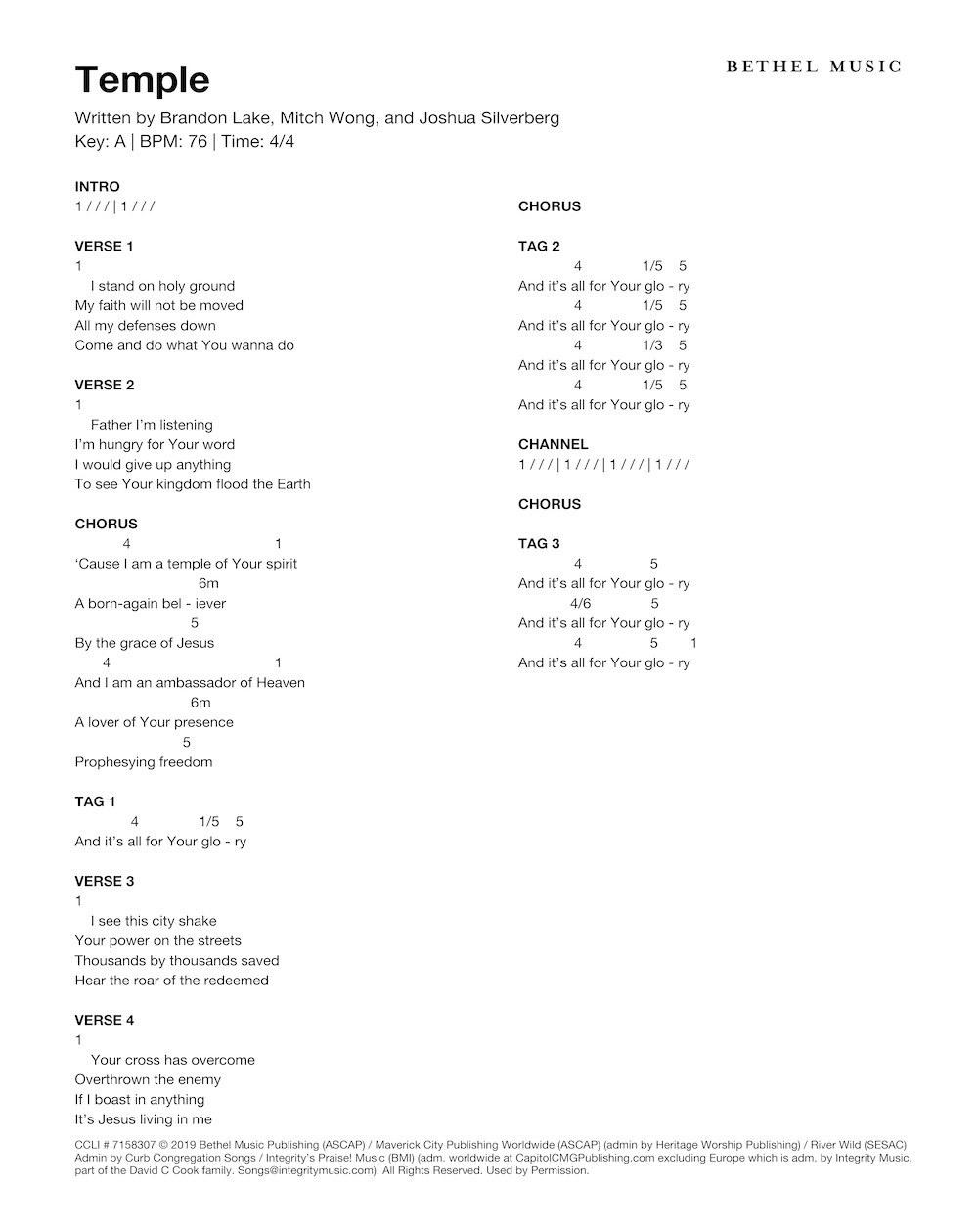 © 2019 Bethel Music Publishing (ASCAP) / Maverick City Publishing Worldwide (ASCAP) (admin by Heritage Worship Publishing) / Brandon Lake Music (ASCAP) (admin by Bethel Music Publishing) / River Wild (SESAC) Admin by Curb Congregation Songs / Integrity’s Praise! Music (BMI) (adm. worldwide at CapitolCMGPublishing.com excluding Europe which is adm. by Integrity Music, part of the David C Cook family. [email protected]). All Rights Reserved. Used by Permission.