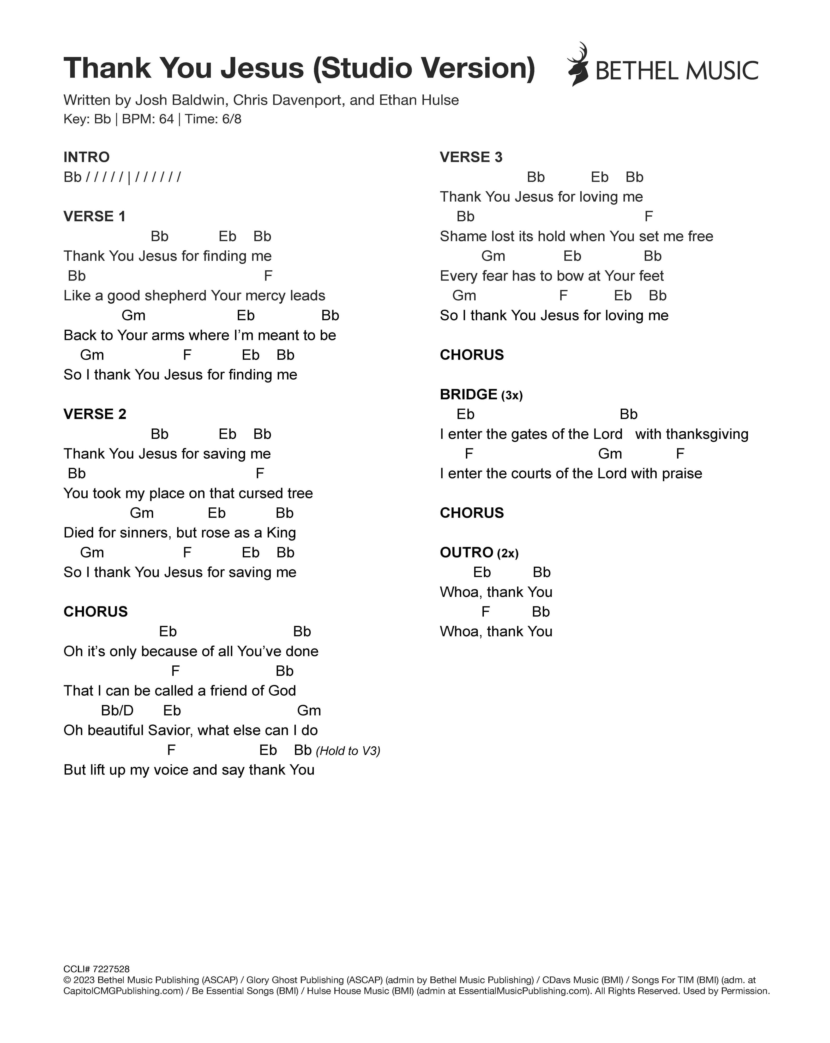 © 2023 Bethel Music Publishing (ASCAP) / Glory Ghost Publishing (ASCAP) (admin by Bethel Music Publishing) / CDavs Music (BMI) / Songs For TIM (BMI) (adm. at CapitolCMGPublishing.com) / Be Essential Songs (BMI) / Hulse House Music (BMI) (admin at EssentialMusicPublishing.com). All Rights Reserved. Used by Permission.