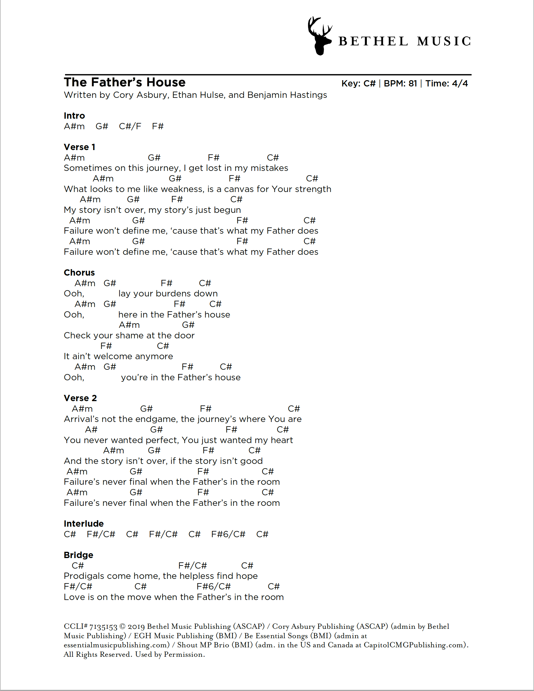 © 2019 Bethel Music Publishing (ASCAP) / Cory Asbury Publishing (ASCAP) (admin by Bethel Music Publishing) / EGH Music Publishing (BMI) / Be Essential Songs (BMI) (admin at EssentialMusicPublishing.com) / Shout MP Brio (BMI) (adm. in the US and Canada at CapitolCMGPublishing.com). All Rights Reserved. Used by Permission.