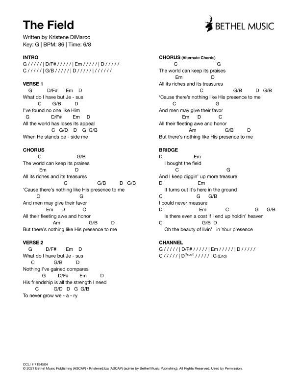 © 2021 Bethel Music Publishing (ASCAP) / KristeneEliza (ASCAP) (admin by Bethel Music Publishing). All Rights Reserved. Used by Permission.