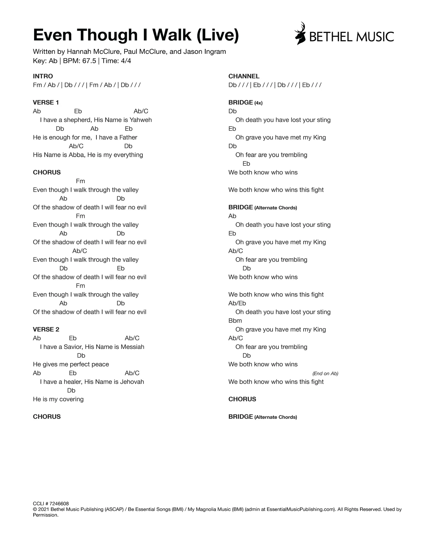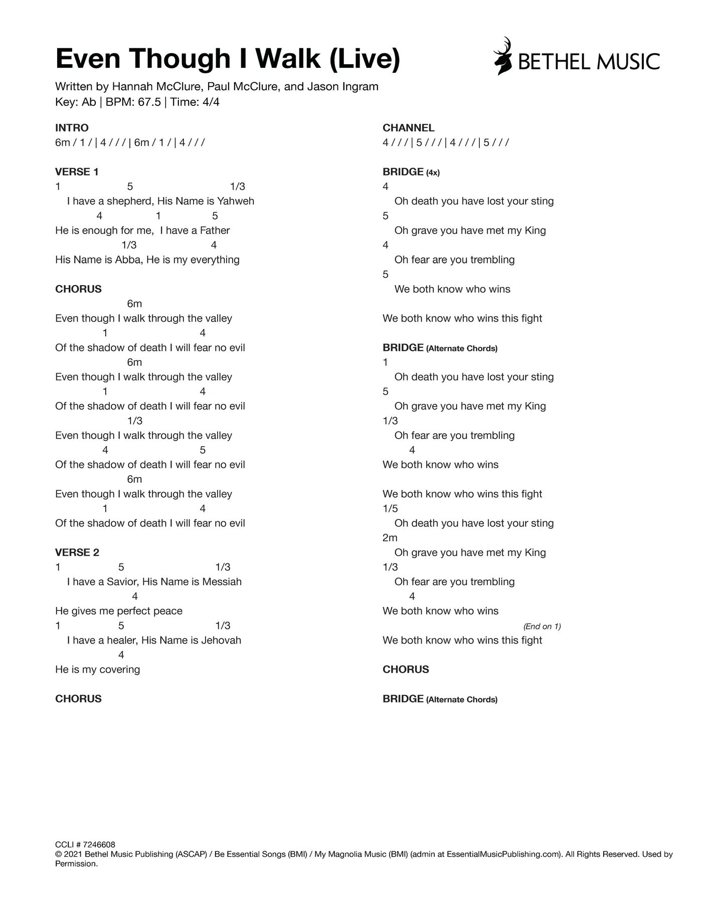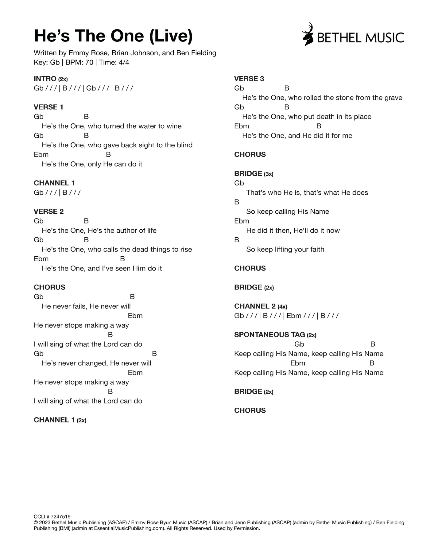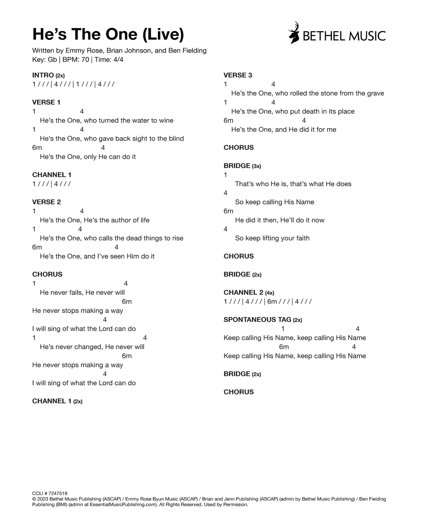 © 2023 Bethel Music Publishing (ASCAP) / Brian and Jenn Publishing (ASCAP) (admin by Bethel Music Publishing) / Maison Publishing (ASCAP) / All Essential Music (ASCAP) / My Magnolia Music (BMI) / Be Essential Songs (BMI) (admin at EssentialMusicPublishing.com). All Rights Reserved. Used by Permission.