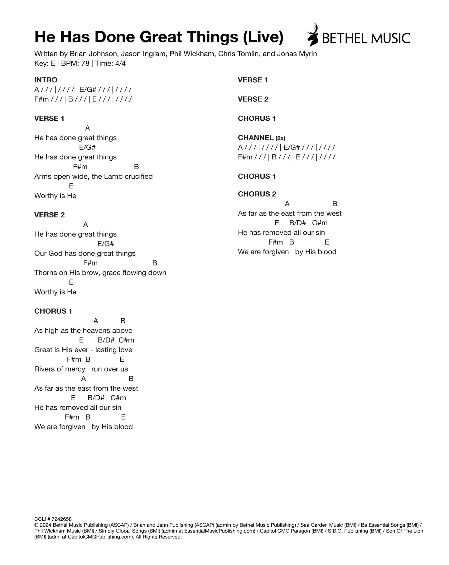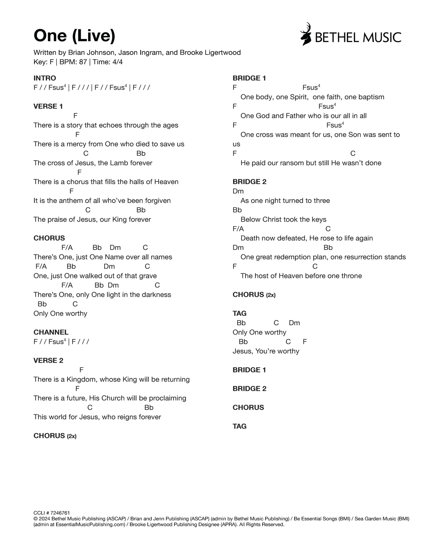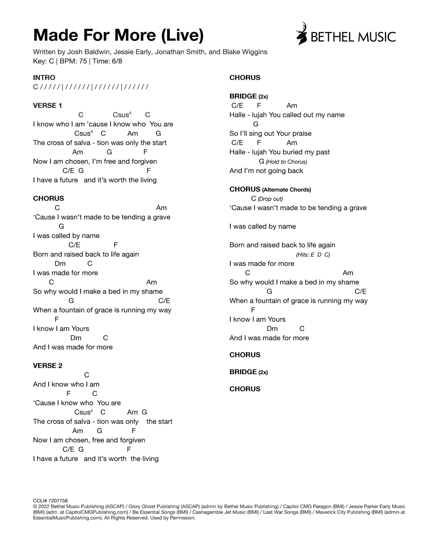 © 2024 Jonathan Stamper Publishing Designee (ASCAP) / Aliyah Stamper Publishing Designee (ASCAP) / Circuit Rider Music Team (BMI) / Circuit Rider Music Collective (ASCAP) / Lindy Cofer Publishing (ASCAP) / Capitol CMG Genesis (ASCAP) (adm. at CapitolCMGPublishing.com) / Bethel Music Publishing (ASCAP) / Brian And Jenn Publishing (ASCAP) (admin by Bethel Music Publishing). All Rights Reserved. Used by Permission.