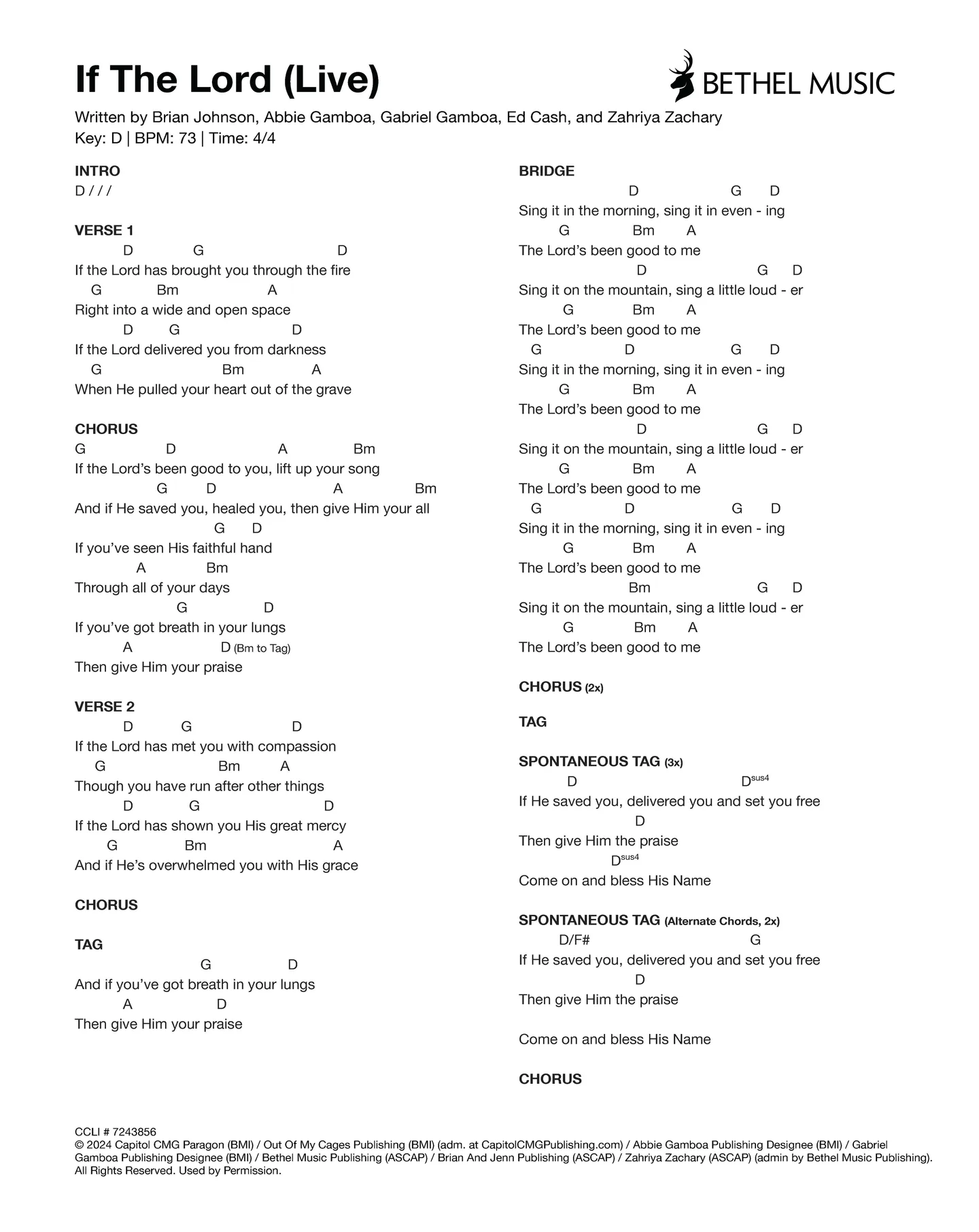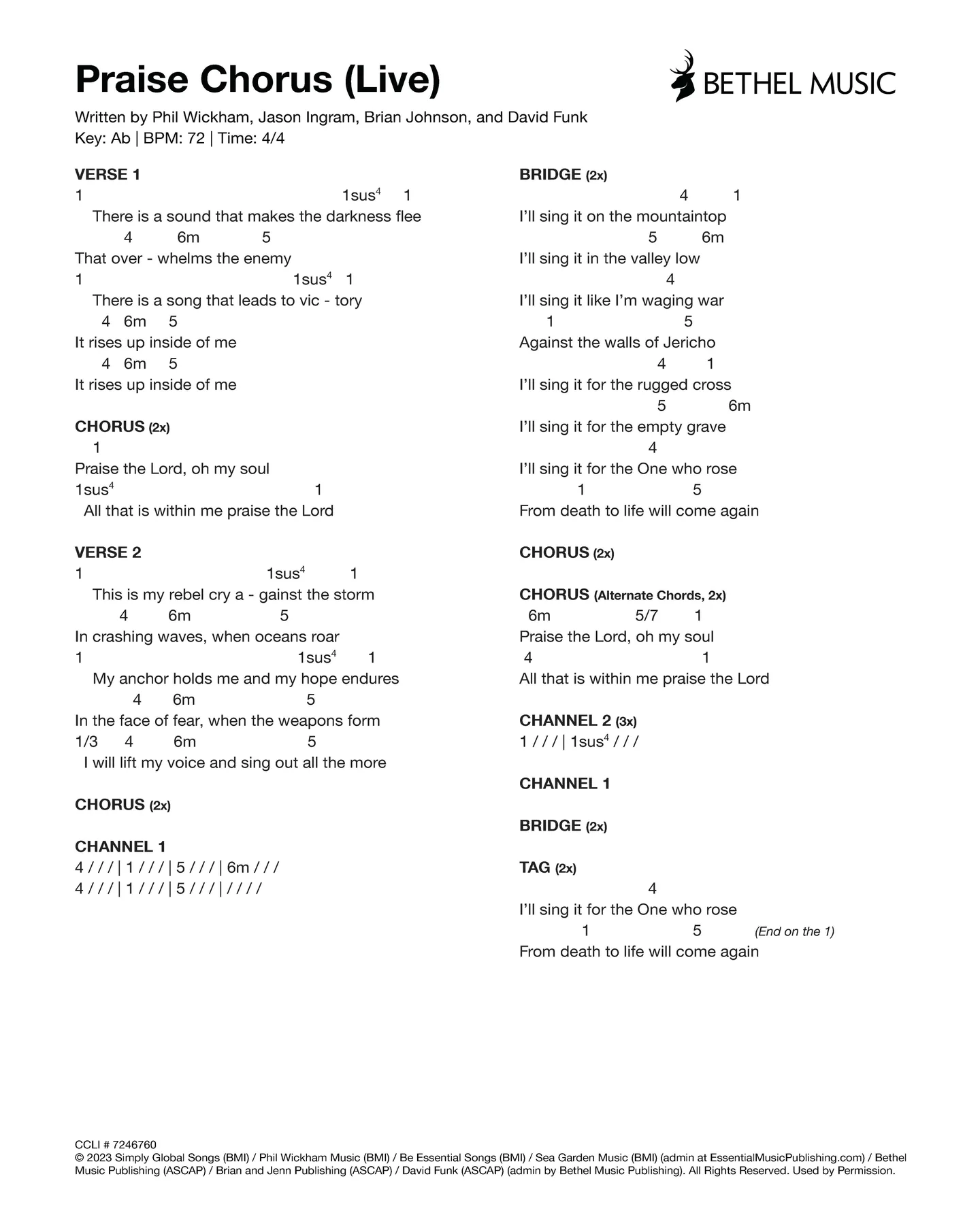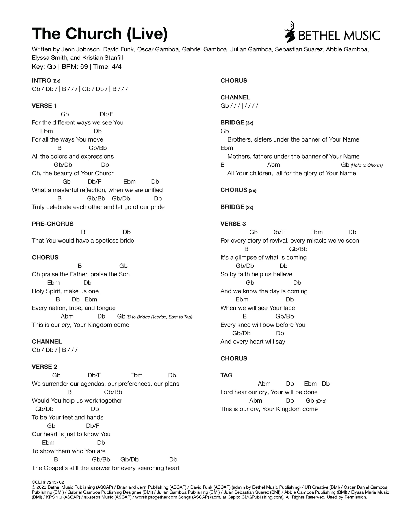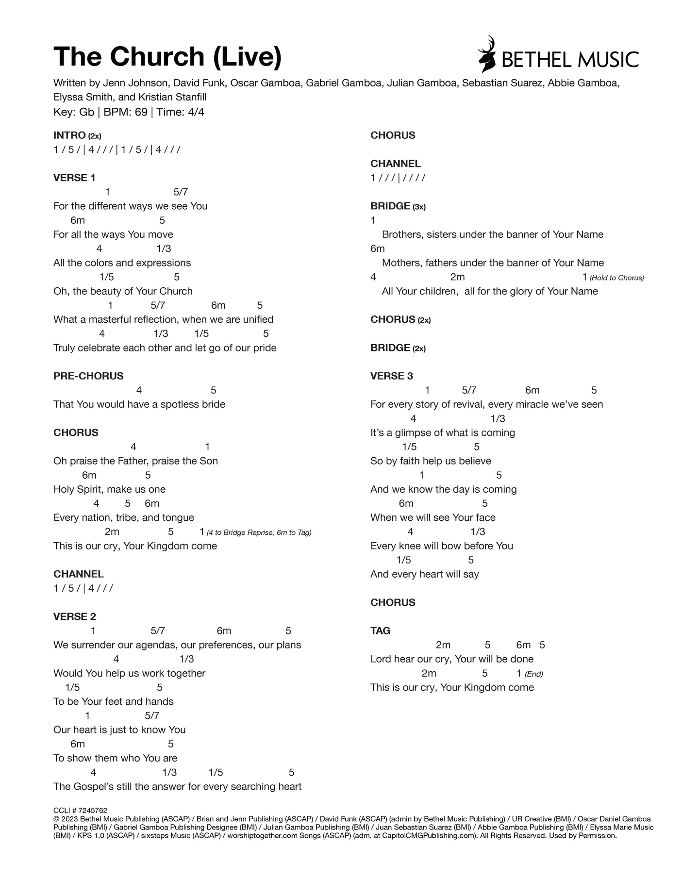 © 2023 Bethel Music Publishing (ASCAP) / Brian and Jenn Publishing (ASCAP) / David Funk (ASCAP) (admin by Bethel Music Publishing) / UR Creative (BMI) / Oscar Daniel Gamboa Publishing (BMI) / Gabriel Gamboa Publishing Designee (BMI) / Julian Gamboa Publishing (BMI) / Juan Sebastian Suarez (BMI) / Abbie Gamboa Publishing (BMI) / Elyssa Marie Music (BMI) / KPS 1.0 (ASCAP) / sixsteps Music (ASCAP) / worshiptogether.com Songs (ASCAP) (adm. at CapitolCMGPublishing.com). All Rights Reserved. Used by Permission.