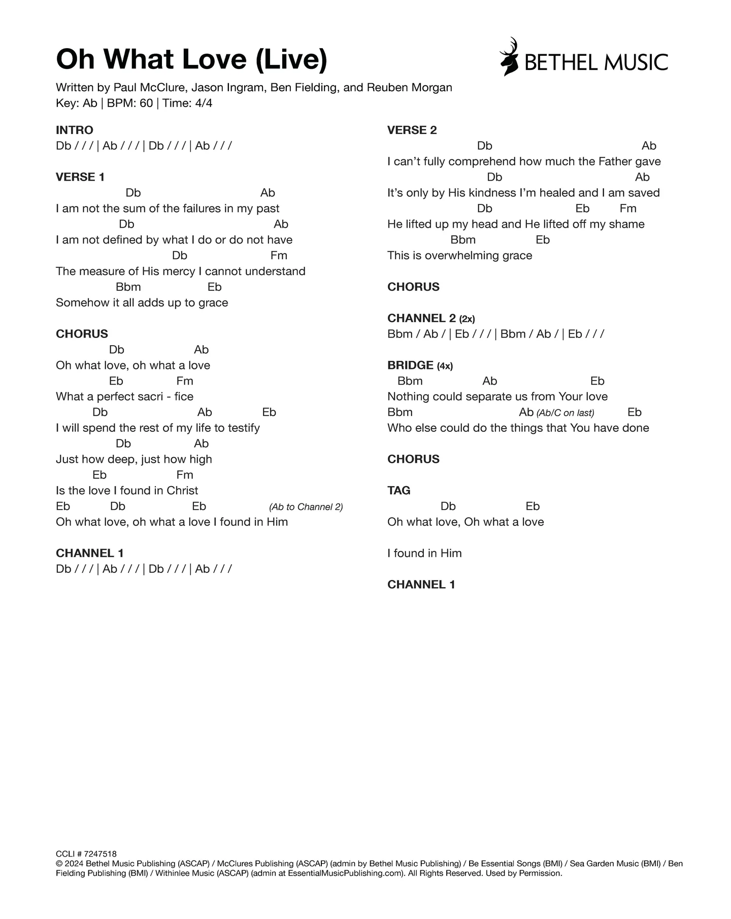© 2024 Bethel Music Publishing (ASCAP) / McClures Publishing (ASCAP) (admin by Bethel Music Publishing) / Be Essential Songs (BMI) / Sea Garden Music (BMI) / Ben Fielding Publishing (BMI) / Withinlee Music (ASCAP) (admin at EssentialMusicPublishing.com). All Rights Reserved. Used by Permission.
