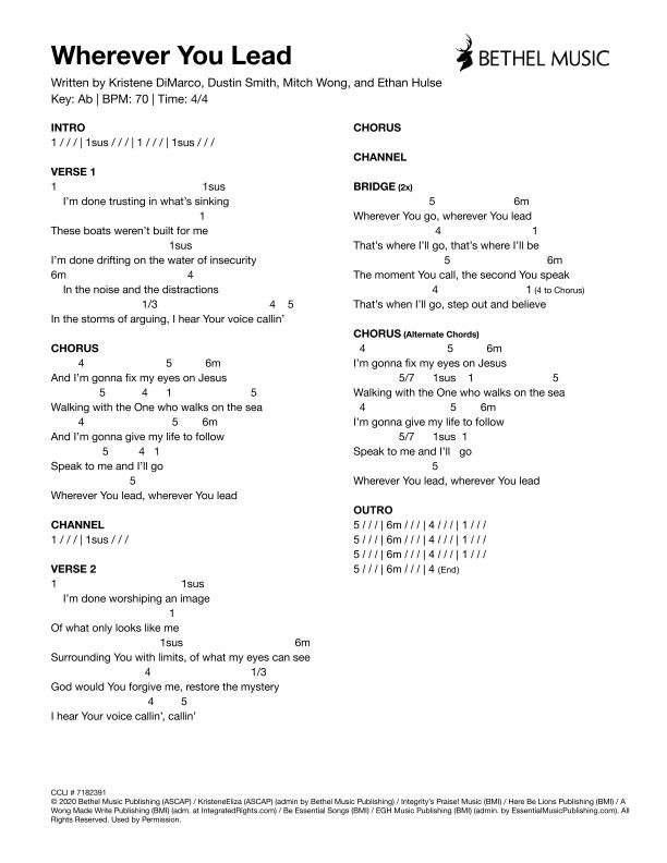 © 2020 Bethel Music Publishing (ASCAP) / KristeneEliza (ASCAP) (admin by Bethel Music Publishing) / Integrity’s Praise! Music (BMI) / Here Be Lions Publishing (BMI) / A Wong Made Write Publishing (BMI) (adm. at IntegratedRights.com) / Be Essential Songs (BMI) / EGH Music Publishing (BMI) (admin. by EssentialMusicPublishing.com). All Rights Reserved. Used by Permission.