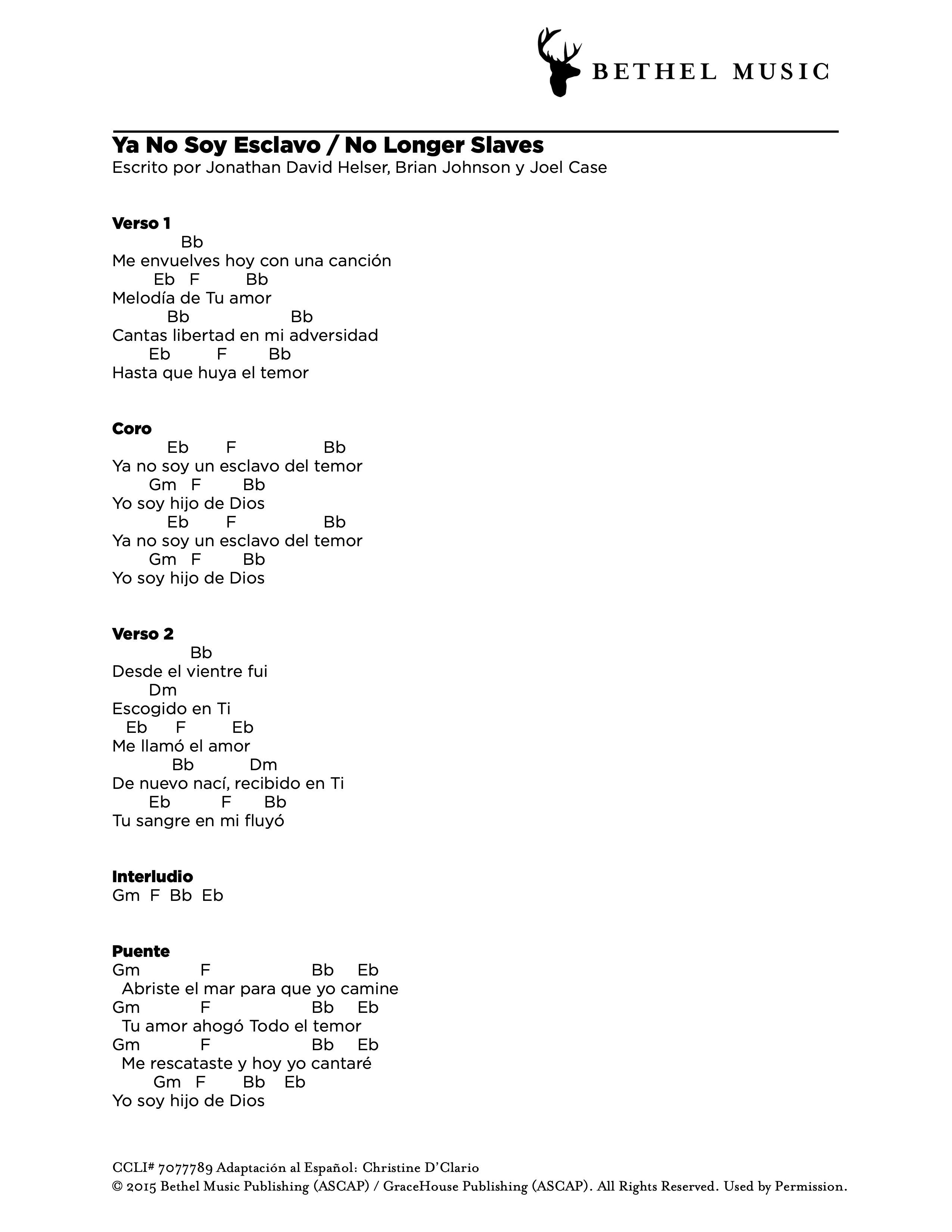 Adaptación al Español: Christine D’Clario © 2018 Bethel Music Publishing (ASCAP) / Aliento Music Group (ASCAP). All Rights Reserved. Used by Permission.