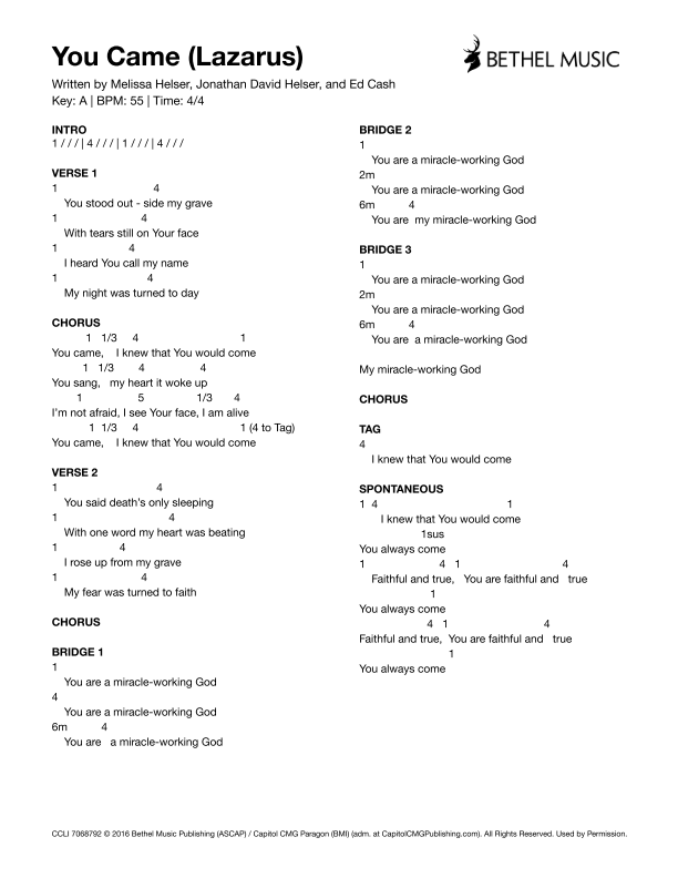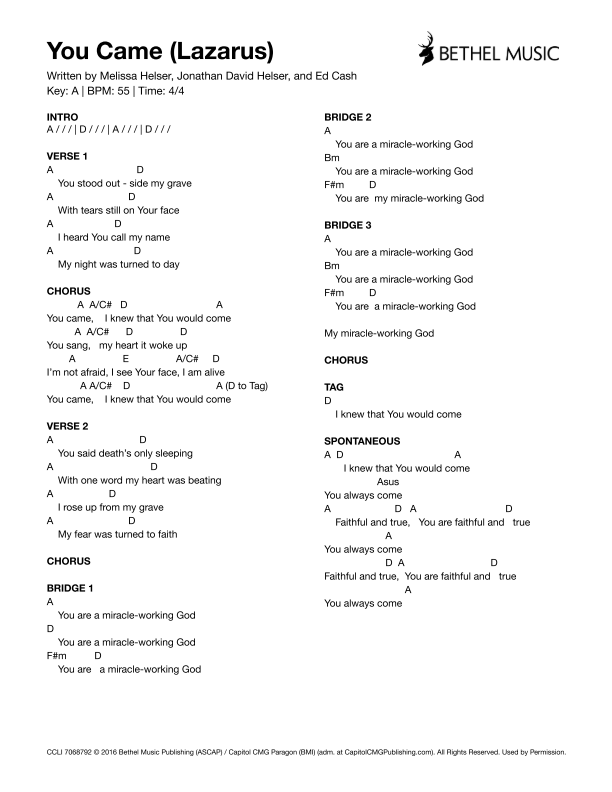 © 2016 Bethel Music Publishing (ASCAP) / Capitol CMG Paragon (BMI) (adm. at CapitolCMGPublishing.com). All Rights Reserved. Used by Permission.